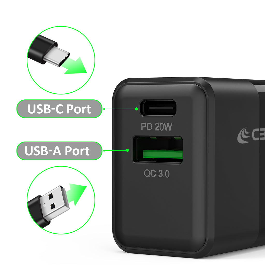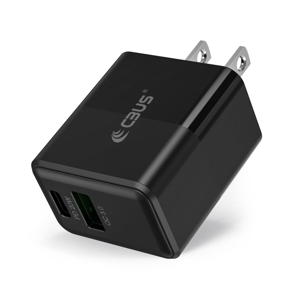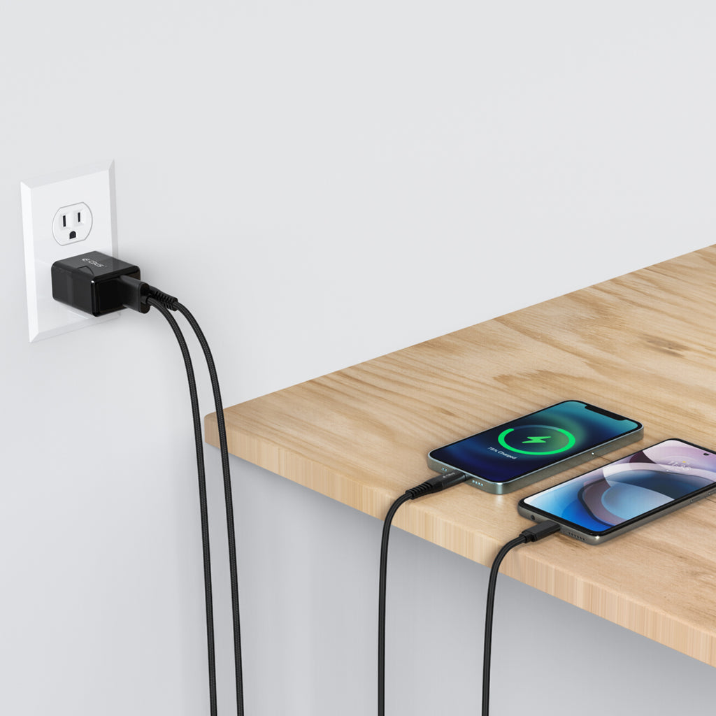 2-Port, 20W Fast Charging Wall Charger (USB-C + USB-A)